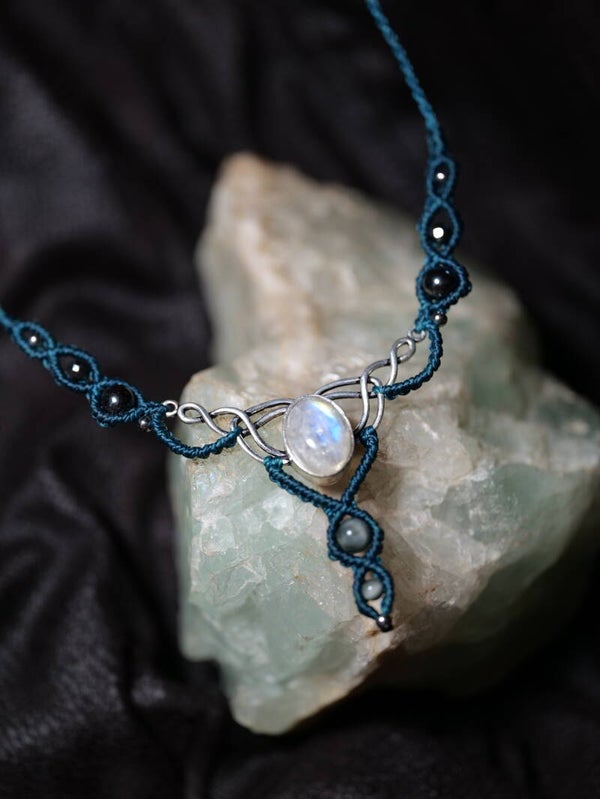 Ce bijou délicat marie la lumière douce de la pierre de lune, l'énergie apaisante de l’améthyste et l'amour tendre du quartz rose. Ensemble, elles créent une aura de sérénité et de magie pure, idéale pour les âmes rêveuses et sensibles.